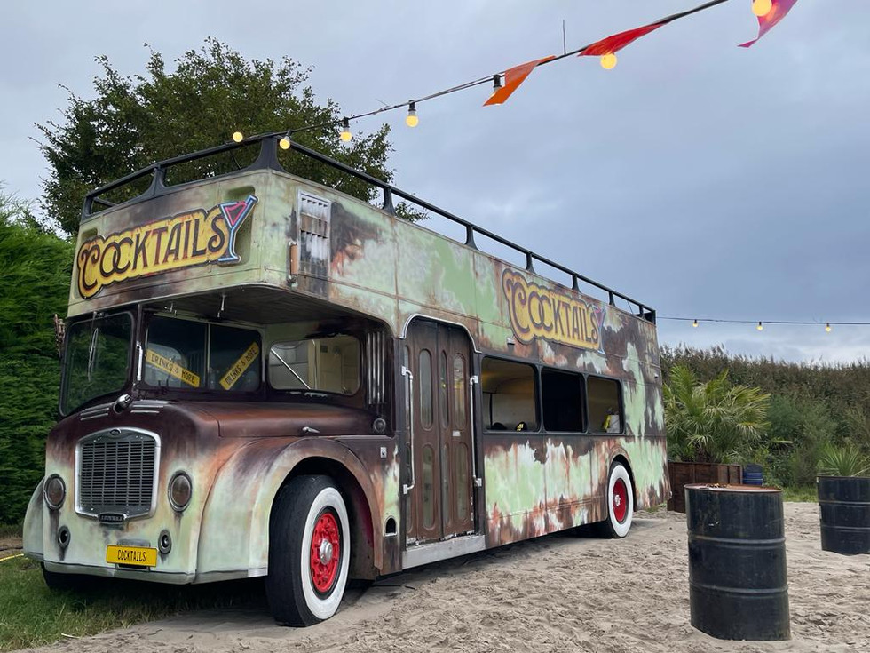 For Booze Stop Events, Concept Factory handled the full creation of this eye-catching cocktail bus — from initial concept design to final on-site execution. Inspired by a nostalgic bus stop setting, the vehicle was transformed into a fully themed cocktail bar, complete with rooftop deck, signage, lighting and weathered paint effects. The result is a mobile party hotspot that combines vintage charm with festival flair, turning every stop into an unforgettable experience.